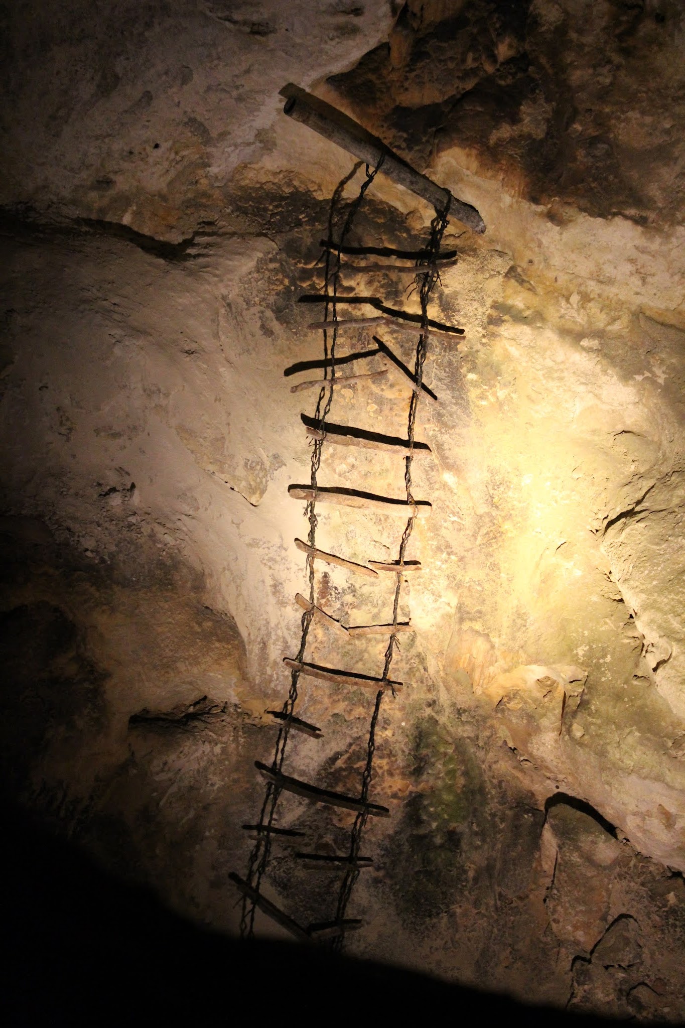 The old entrance was certainly more challenging, and there are remnants of the old ladders and staircases in the caverns. There are still wooden stairs that originally took people down a different way until the “iceberg rock” detached and fell crushing the stairs and necessitating a new entrance.